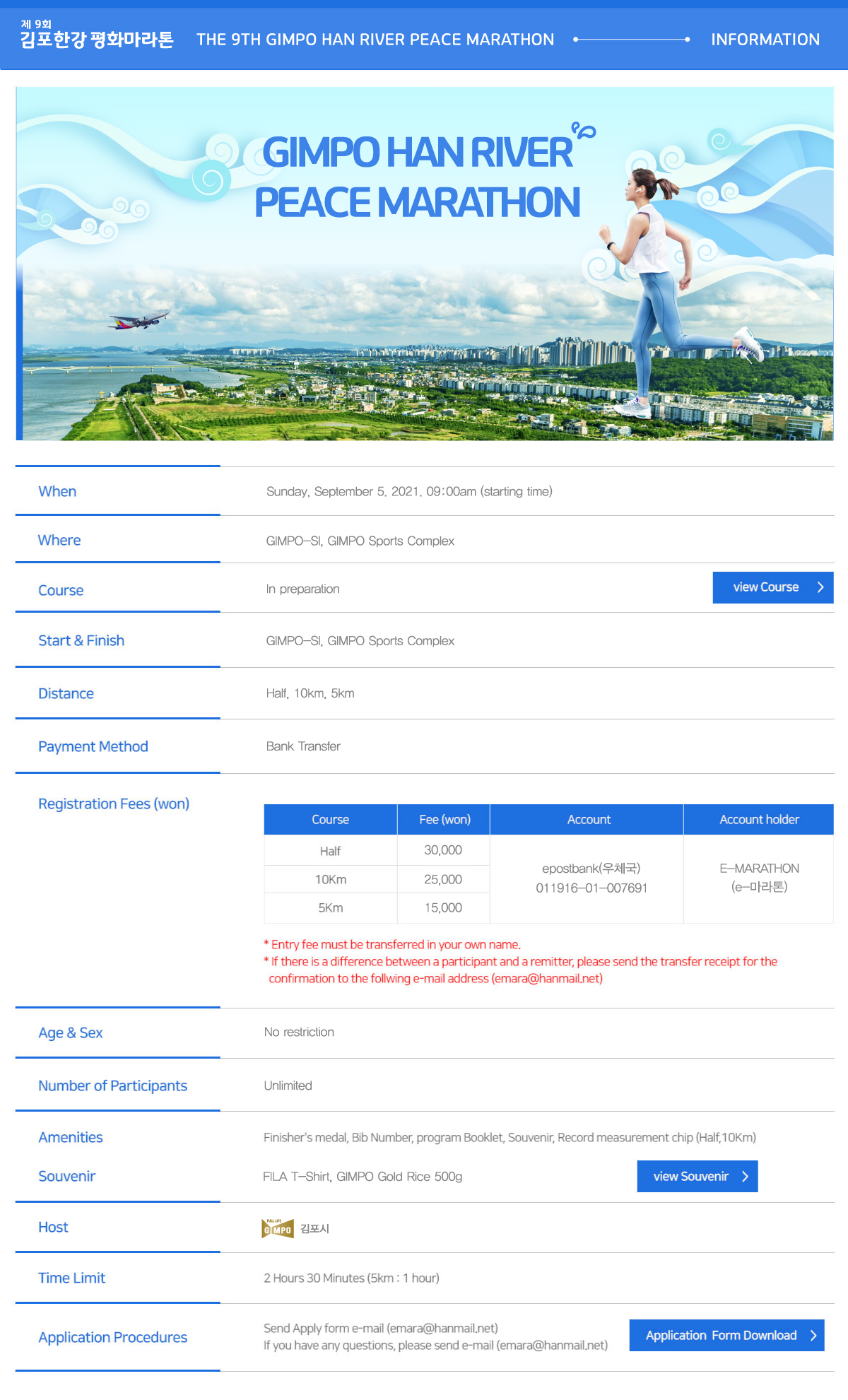 입금자명 : 경기국제하프마라톤