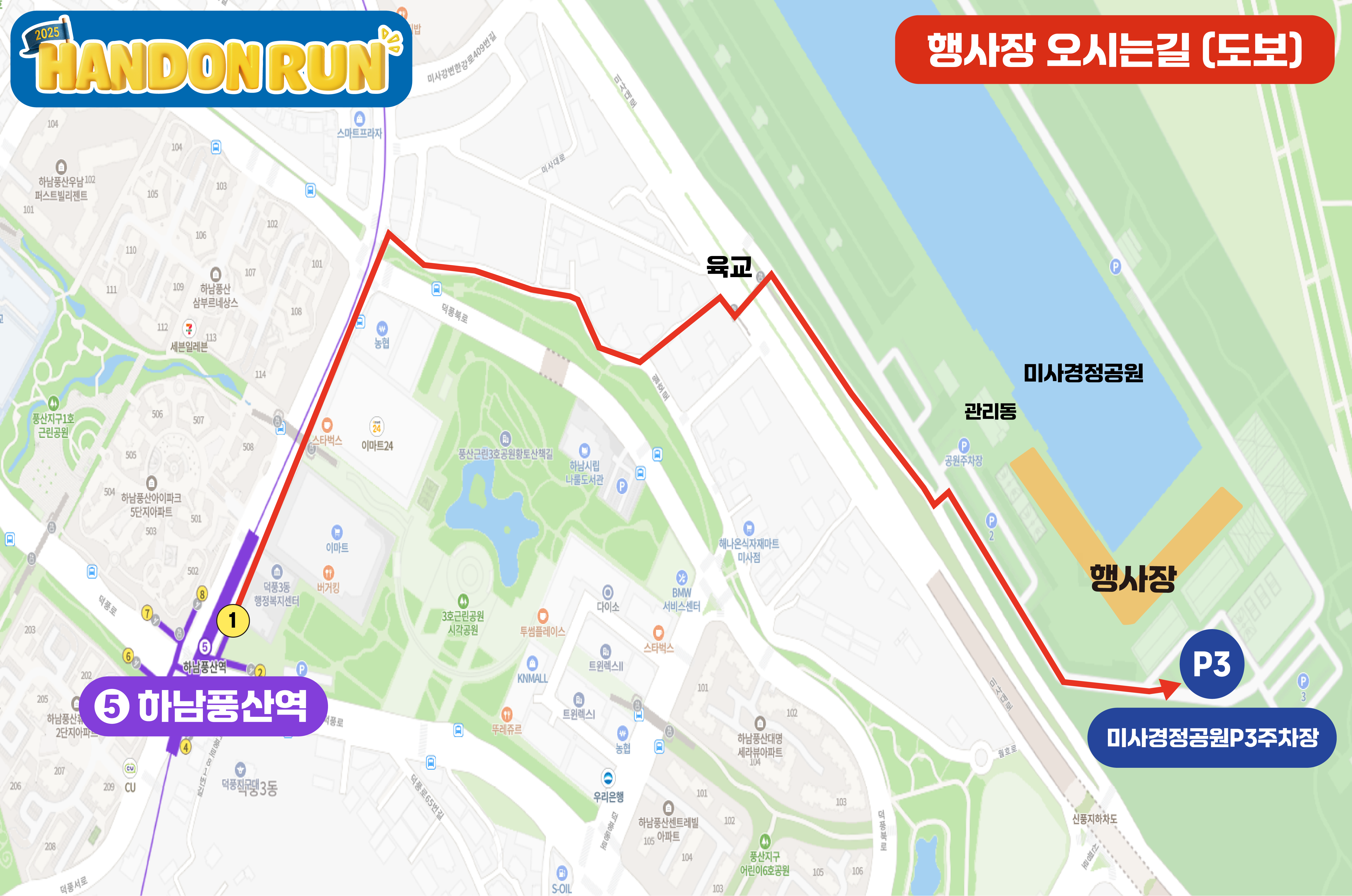 하남풍산역 2번출구 → 도보15분 → 경정공원 관리동